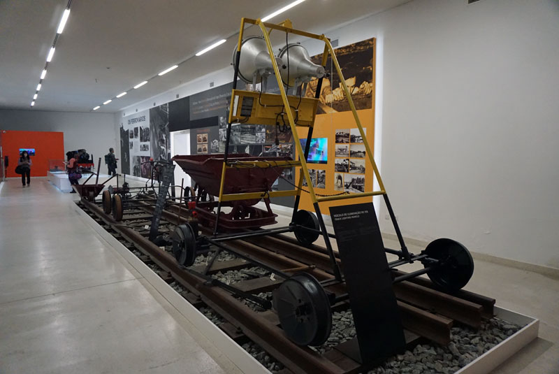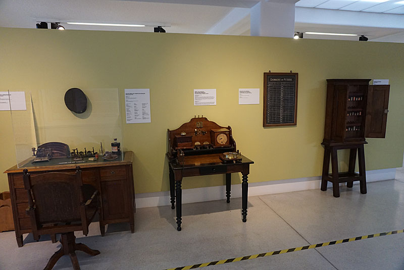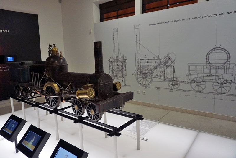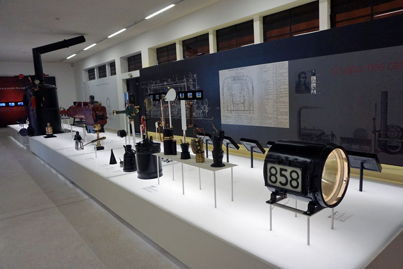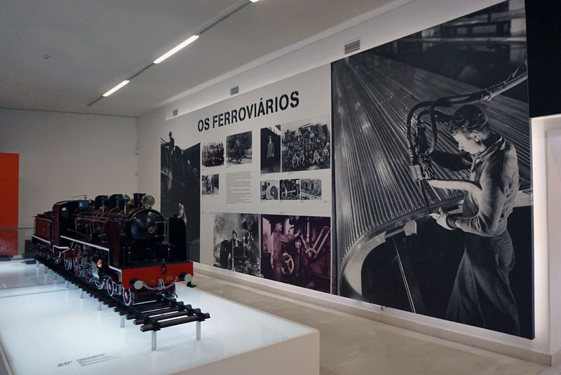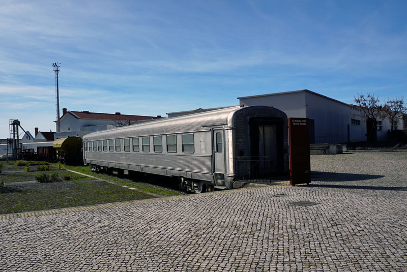 右側の、デッキが車両の中央にあるステンレス製の客車は、1940年の米国バッド社製。全28両のうち、6両は米国で、残りの22両の組み立てはリスボンのテージョ川対岸、パレイロの工場で行われた。ステンレス車体を採用することで強度や安全性が向上するとともに、軽量化にも寄与した。6両編成でリスボン−ポルト間の列車に投入され、シルバーアロー(銀の矢)とよばれた。