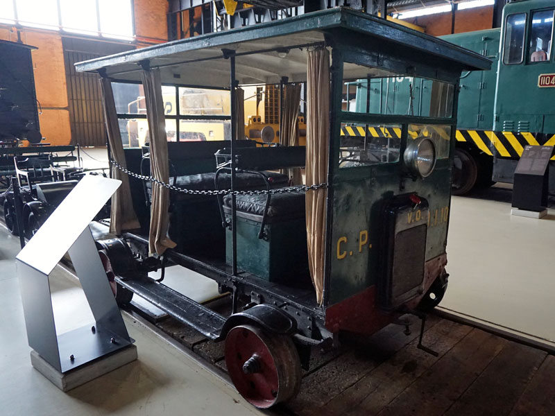 もう1両、4輪でガソリンエンジンの作業員輸送車DI5は、1940年のポルトガル製。線路工事部の所属で保守作業の必要な地点まで、人員を輸送する車両。車内には運転席や座席の他に、工具や作業機器を収納するスペースもある。