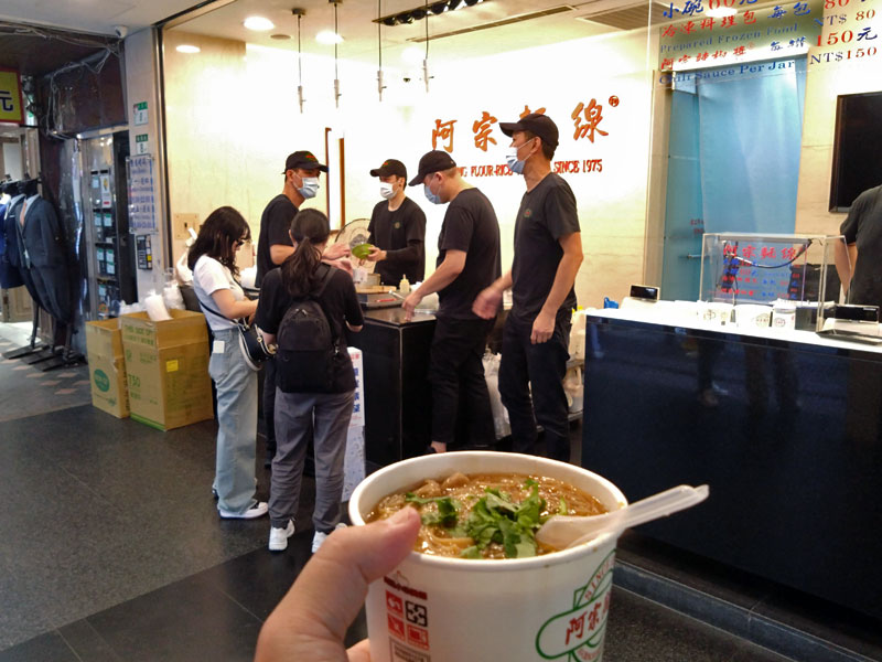 この店、以前から食べるスペースは用意されていない。やむなく前の道路で立ち食いしようとしたら、ベンチの人がお尻をずらして腰を掛けられるスペースをつくってくれた。台湾の人は優しい。