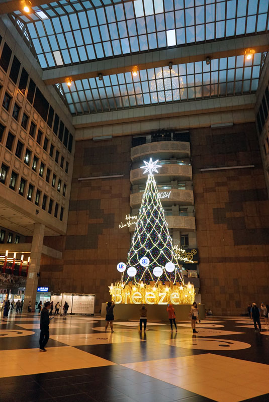 駅舎の中の大ホールには、クリスマスの飾り付け。