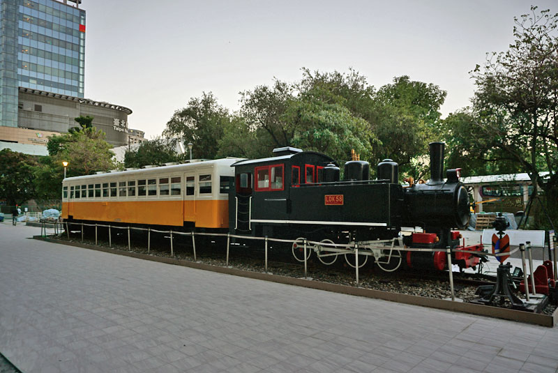 国立台湾博物館鉄道部パークの見学を終え、近くの台北駅へ。駅舎の外には、かつてナローゲージの路線だった、東海岸の花蓮と台東を結ぶ台東線で活躍した、蒸気機関車とディーゼルカーが展示されている。