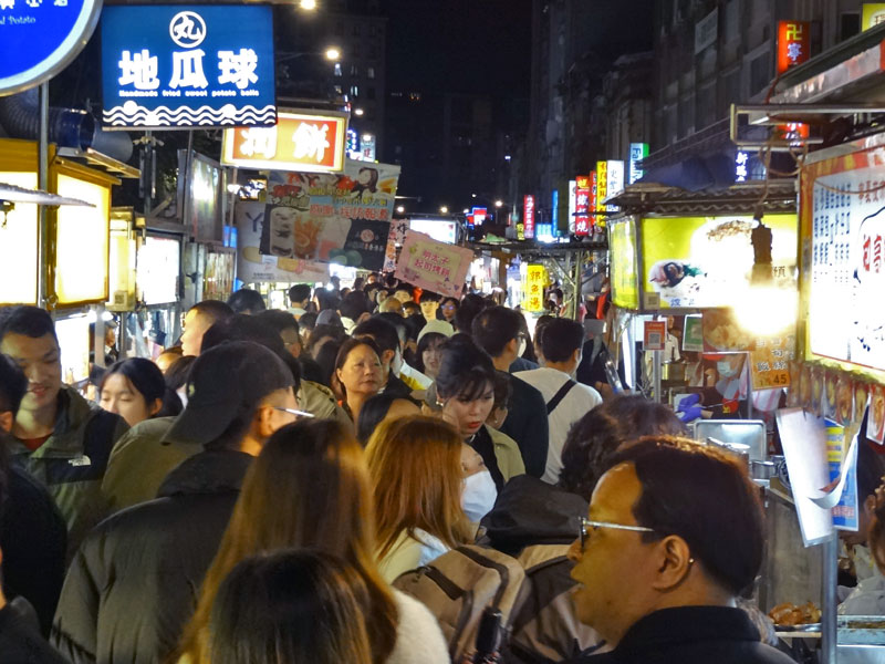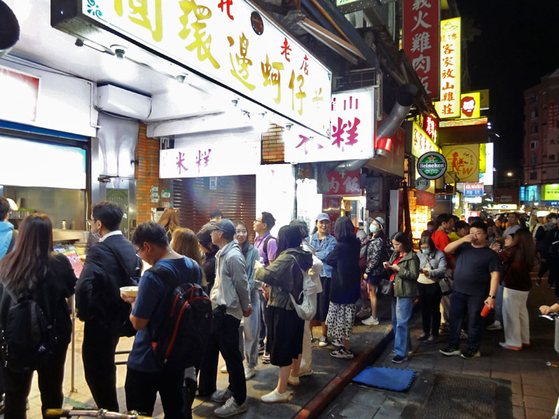 以前に食べたことのある台湾名物、蚵仔煎(牡蠣オムレツ)の店など、この行列。前回は並ばずに入れたのに。