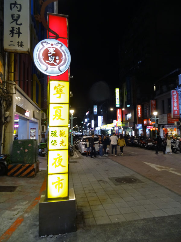 中山のホテルに戻ってチェックイン。夕食は、歩いて行ける範囲にある寧夏路の夜市へ。看板の出ている付近は人影はまばらだが、