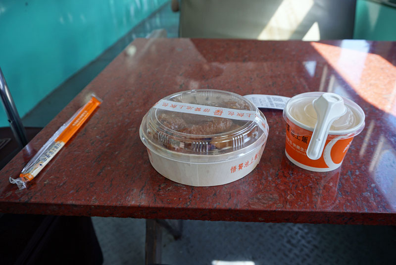 これが120元(約600円)の弁当。高くなったといっても、日本の駅弁の半額かな。