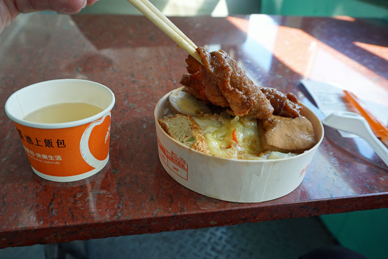 駅弁の店“悟饕池上飯包”。今は無くなっているが、最初に鉄道で台湾を一周した20年前に池上を通ったときには、ホームに名物の便當(駅弁)の立ち売りがいた。お昼前に池上に下車したので、次の新自強号までの70分の時間で駅弁屋に立ち寄ることに。