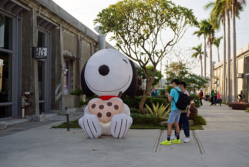 スヌーピーの横に線路跡のようなものが。日本統治時代に開発された埠頭の倉庫街に、臨港線の高雄港駅から引き込み線が延びていたのかもしれない。