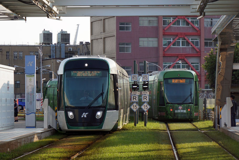 その後、貨物線の跡地を活用して路線が延長され、哈瑪星鉄道文化園区に保存されている蒸気機関車に隣接する線路を、LRTが行き交うようになった。