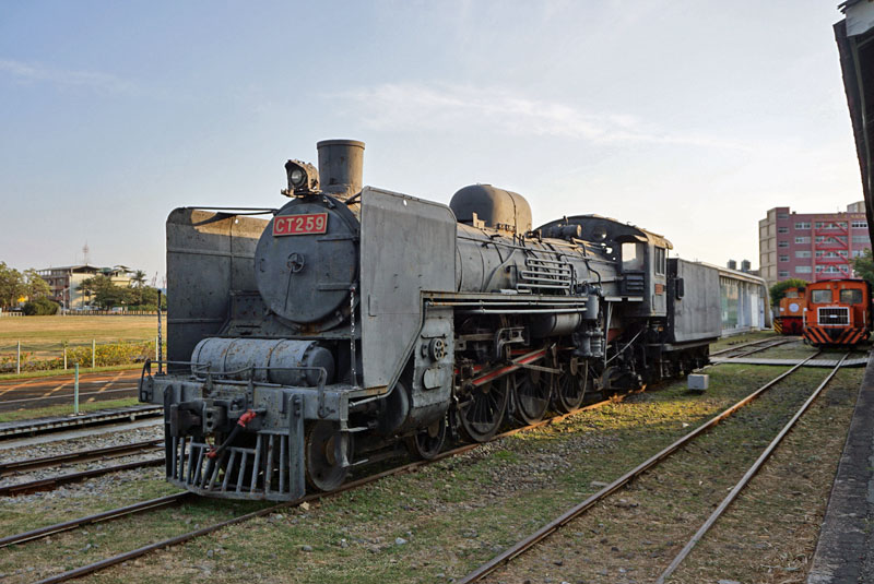 1938年の三菱重工製、大きなスポーク動輪のCT250型のラストナンバー259号機は、日本統治時代の台湾総督府鉄道C55型。テンダの台車を見ると、本来の鋳鋼製ではなく、C57やD51の二次型以降の板台枠タイプなので、どこかの時点でテンダの振り替えが行われたのかもしれない。