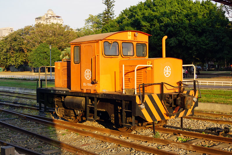 2軸の貨車移動機、DL-1043。DL1000型は台鉄に数多く導入され、外観は日本の国鉄の貨車移動機をモデルにしているが、1985年の台湾製。同型機には、日本の協三工業製もあるらしい。